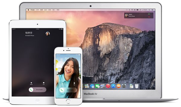 跨设备的连接:在系统iOS 8及OS X Yosemite下你就可以在iPad和Mac上面接电话和收发简讯了。
