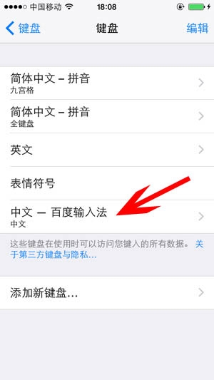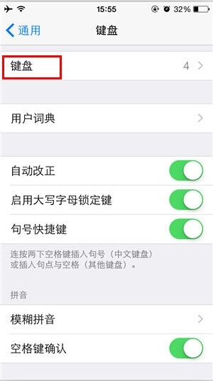 2.在通用列表中请点击“键盘”,之后在键盘列表选项中再一次点击“键盘”