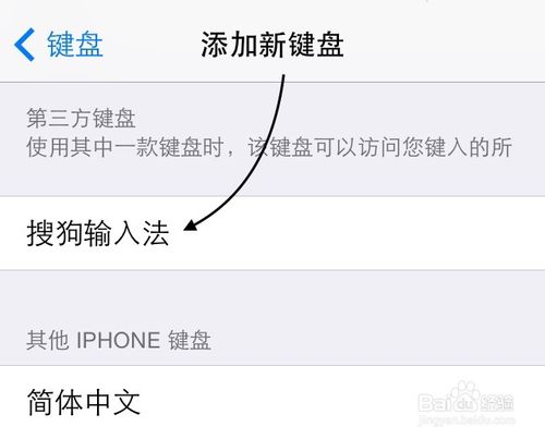 6、随后在第三方键盘下方,点击添加“搜狗输入法”键盘,如图所示