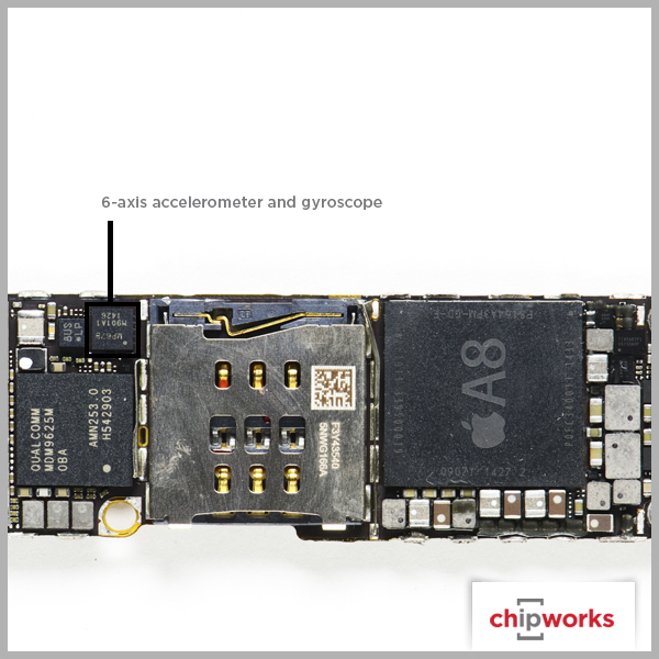 iPhone 6 Plus 另一个令人不高兴的地方是加速计和陀螺仪。传统上,苹果是用意法半导体的芯片,但是这次用了 InvenSense 公司的。新的加速计和陀螺仪的零件号是 MP67B。根据 InvenSense 公司的网站,MPU 系列的均是与独立指南针和 APU 接口的 6 轴装置。