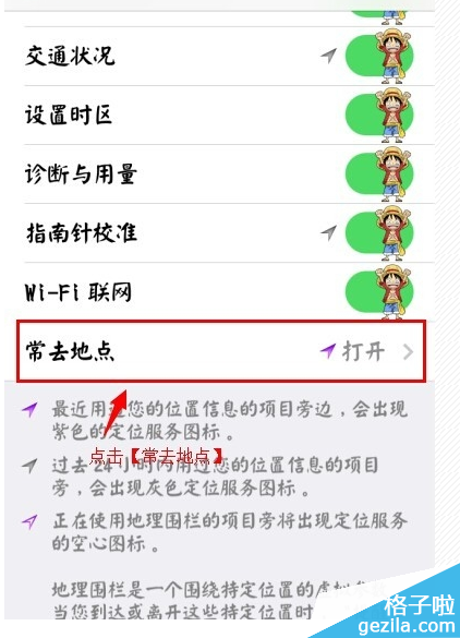五.点击【常去地点】。这里是默认打开了。从隐私方面来说,感觉苹果有那么一点的“坏”。现在我们就进去把这个给关了。