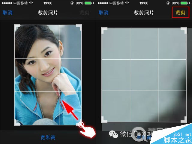 在裁剪状态下,手指按住右下角向左上角拖动那个网格,直到将图片放大到看不清主体为止。当然你按住左上角向右下角拖也是可以的。我这里只是示范下。