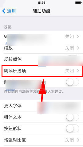 2)选择【辅助功能】,再点击【朗读所选项】。(如下图)