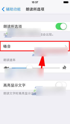 3)把【朗读所选项】选项打开,接着点击【嗓音】。(如下图)