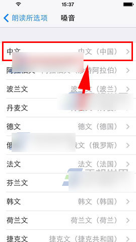 4)接下来大家选择自己想要手机朗读的语言,最后在看文章时候长按字体,把全部字体选择,点击【朗读】即可完成。(如下图)