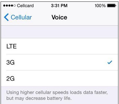 用户可以到 设置 -> 蜂窝网络 -> 语音和数据 选项里, 手动选择想要使用何种网络. 这样不仅可以节省流量, 也可以减少一定的电力消耗. 此前苹果官方表示 iPhone 6 Plus 使用 3G 网络, 通话时长达 24 小时. 要是切换到 2G 网络, 那一定能续航更久. 当然这个新功能最大的意义还是体现 iOS 8 的开放, 将选择权交还给 iPhone 用户.