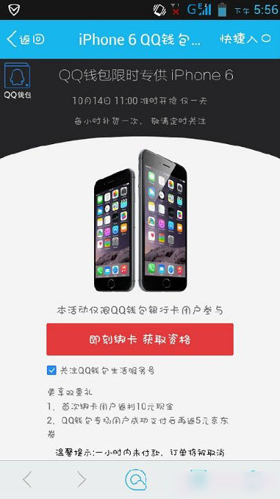 下午小编手机QQ突然收到QQ提醒,发现是iPhone6 QQ钱包的限时抢购活动,于是脚本之家小编大公无私的把活动地址分享给大家,喜大普奔吧~!
