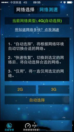 3、运行移动流量仪,网络管理里选择自动选择,如下图。