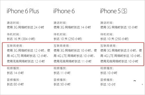 所以实际上对于经常3G和4G上网的用户来说,iPhone 6 Plus和 iPhone 6与5s几乎是差不多,如果你的5s需要一天充电2-3次,那iPhone 6和Plus也基本上类似。
