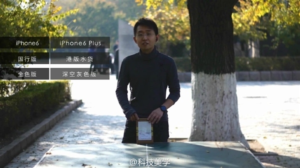 比较有意思的,科技美学还在微博上配上了一张图片,瞬间把土豪金版iPhone 6黑哭了……