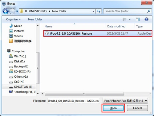 3、在弹出的窗口中,浏览并选择此前下载好的iOS8.1固件(格式为ipsw):