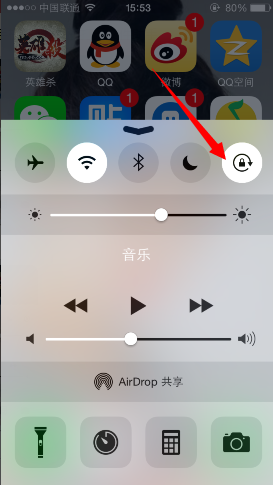 iphone6/6 plus怎么关闭屏幕旋转1、从屏幕底部上拉,出来窗口,点击最右上角的图标(关闭显示为亮),效果图如下: