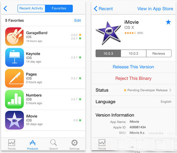 如果你对此感兴趣,你可以在 App Store 内找到 iPhone 和 iPad 版本的 iTunes Connect 应用。当然你需要是一个注册了的开发者或者是 iTunes 的艺术家。