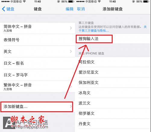 别忘记 iOS 8 开放了第三方键盘应用程序接口!不过在安装了第三方输入法后之后,系统是不会直接开启。你需要在设置——通用——键盘——添加新键盘,然后新增第三方输入法,最后通过键盘内地球图标切换输入法就可以了!