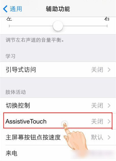 第三步、“辅助功能”界面中,我们选中进入“Assistive Touch”。
