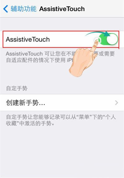 第四步、进入“Assistive Touch”界面后,我们通过滑动横条开启“Assistive Touch”功能。如果开启成功后,会有小圆点一样的“小太阳”出现。