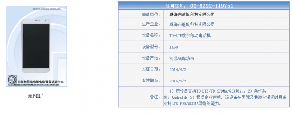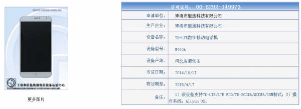 通过查询入网许可证之后,我们发现目前魅族M4xx系列只有M460、M460A和M461拿到了入网许可证,分别是移动版MX4、YunOS版MX4以及联通版MX4。