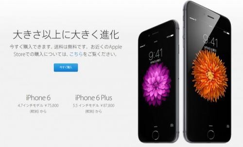 现在,日本官网在线商店的价格已经变为4.7英寸iPhone 6的16GB/64GB/128GB版售价75800/87800/99800日元,5.5英寸iPhone 6 Plus的16GB/64GB/128GB版则分别售价87800/99800/111800日元。