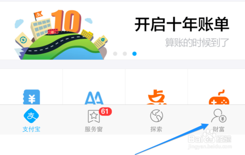 2、在 iPhone 上登录支付宝以后,点击右下角的“财富”栏目,如图所示