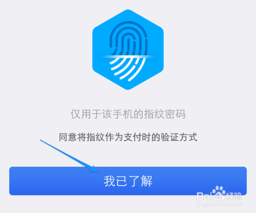 6、随后会提示关于手机指纹支付的一些注意事项,点击“我已了解”按钮继续。