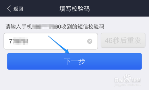 7、接下来为了安全,系统会向我们在此支付宝绑定的手机发送一条验证短信,输入以后点击“下一步”按钮继续。