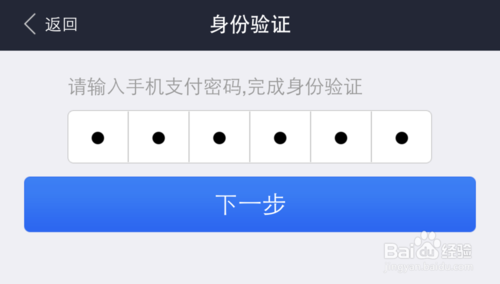 9、指纹核实成功以后,接着还会要求我们输入在手机支付宝的“支付密码”,输入继续。
