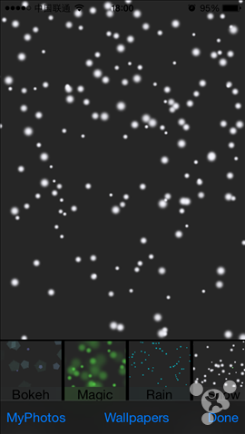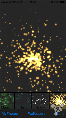 《DIYWallpaper》可以让设备中的静态壁纸动起来,也就是为静态壁纸或者相机胶卷中的任何静态相片添加DIY动态效果,然后再设置到锁屏与主屏幕界面上。