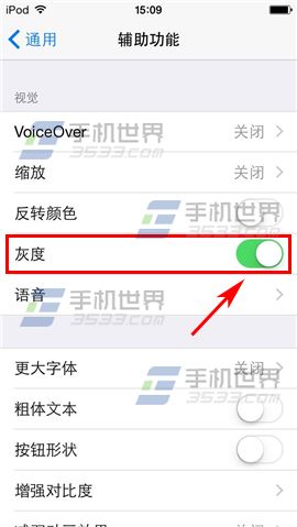 2)选择【辅助功能】,把【灰度】选项打开即可。(如下图)