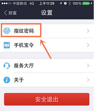 4、登陆支付宝之后,点击财富-设置,就能看到指纹密码了!