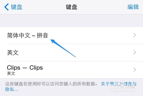 3、接着选择我们从 App Store 里下载安装的第三方输入法,如图所示