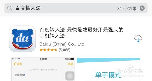 1、对于一些美版的 iPhone6 手机,可能系统中没有九宫格输入法。如果系统自带的输入法不能设置九宫格的话,此时我们还可以在 App Store 中下载第三方输入法,比如百度输入法。