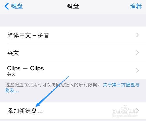 2、当安装好了第三方输入法以后,接下来可以按照上面的方法,进入键盘的设置列表,点击“添加新键盘”选项。