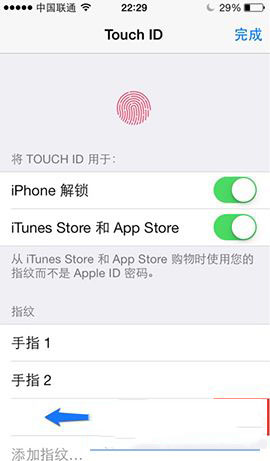 3)在【Touch ID和密码】列表中,找到【Touch ID】选项,点击进入,就可以看到自己之前已经设置好的指纹了。