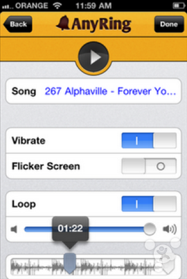 《AnyRing》是强大的铃声自定义工具,允许用户从iPad、线上、蓝牙连接或者是Youtube上直接获取铃声,再通过强大的编辑器给短信、单一的联系人或者邮件设置铃声。