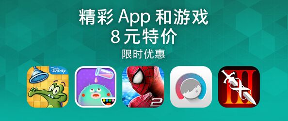 苹果今天公布了 2014 年度下载量最高的付费和免费应用榜单,同时公布了最赚钱的 iOS 应用名单。与此同时,苹果还在中国 App Store 推出了一个 8 元特价区的限时优惠活动。包括《无尽之剑 3》、《超凡蜘蛛侠 2》、《鳄鱼小顽皮爱洗澡》等知名游戏和 Day One、GoodReader、Scanner Pro by Readdle 等人气应用都在榜单内。
