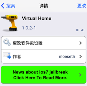 打开cydia -- 搜索 -- 《Virtual Home》-- 安装《Virtual Home》源地址:BigBoss (免费)