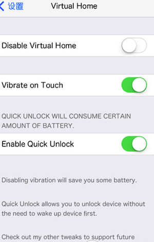 virtual home怎么用呢?virtual home ios8该怎么设置呢?VirtualHome 是首款 Touch ID 触摸模拟物理 Home 按键动作插件,你可以轻触 Touch ID 来实现 home 键一次点按、轻触 Touch ID 二次实现 Home 键双击动作。