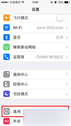 1)打开iphone5手机【设置】,点击【通用】。(如下图)