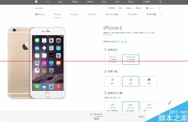 Step 1:首先到香港Apple官网的iPhone6 购买页面,选择你需要机型(iPhone 6 / 6 Plus);颜色以及容量大小等。选择完毕以后就可以点击“选取”按钮进行下一步。