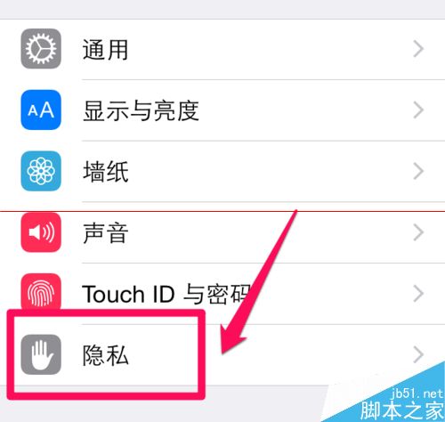 2、接着在设置这里选择隐私。