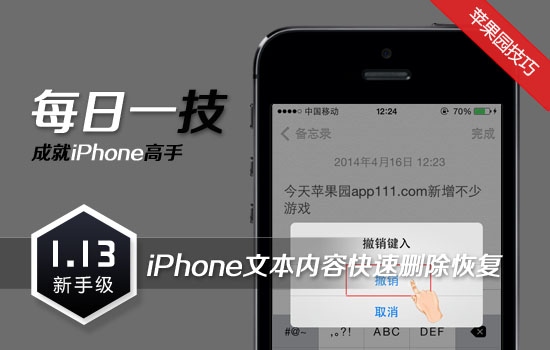 iPhone是苹果公司推出的智能手机,精美的外形和智能化的功能,深得不少果粉的喜爱,已成为比较流行的街机。为方便大家了解和熟悉iPhone功能和技巧,下面为大家介绍iPhone文本内容快速删除恢复技巧。