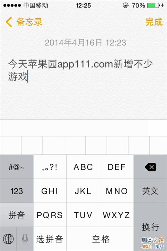在iOS7和iOS8系统中,输入文本时,可以将全部内容快速删除和快速恢复,例如在使用“备忘录”应用录入文字时,操作方法只需要用户晃动几下手机即可实现。