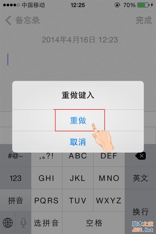 若需要恢复刚才删除的内容,只需要再将iPhone晃动几下,就会弹出“重做键入”窗口,这些删除的内容就又回来了。