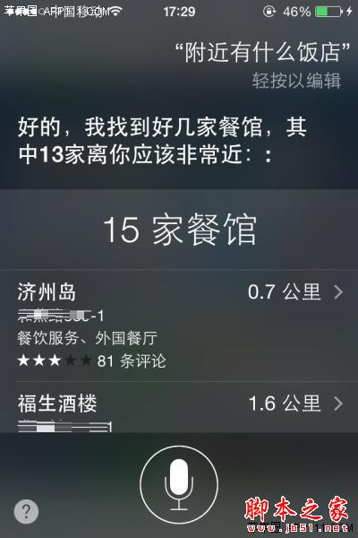 如何使用苹果Siri查询附近的饭店?