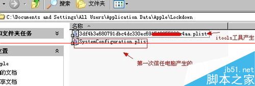 苹果手机信任电脑点击信任之后会在【C:\Documents and Settings\All Users\Application Data\Apple\Lockdown】生成【SystemConfiguration.plist】,不信任电脑也会生成这文件,但是字符串是不一样的。(如图)