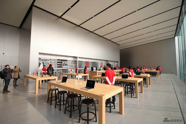 苹果公司本周六在杭州的第一家零售店即将开业,今天上午举办了媒体预览日,展示了这家店的布置及细节。