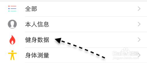 3、在健康应用里的“健康数据”里,找到“健身数据”一栏,点击进入。