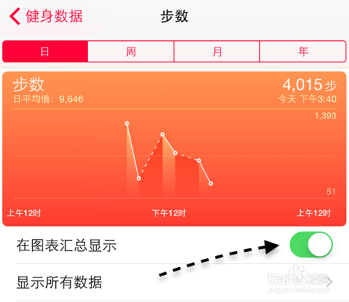 我这里以步数为例,可以看到当前我行走的频数。另外建议勾选“在图表汇总中显示”选项,这样一来,以后可以直接在图表汇总栏目中查看。