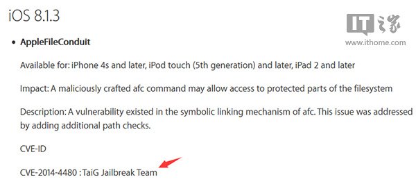 苹果最新支持文件显示,iOS8.1.3正式版系统新增了安全补丁,已对太极越狱团队此前利用的漏洞进行了修复。