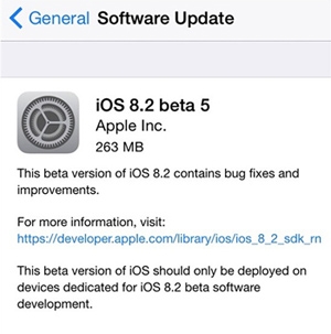 iOS8.2 beta5官方固件下载地址汇总(需开发者账号)iOS8.1.3正式发布没几天,苹果又向开发者推送了iOS8.2 beta5,并带来了对Apple Watch应用开发的WatchKit工具支持。拥有开发者账号的用户可下载相应机型的固件,然后通过iTunes来“shift+更新”进行升级,即可抢先体验iOS8.2 beta5。下面就一起来看看iOS8.2 beta5固件下载地址吧